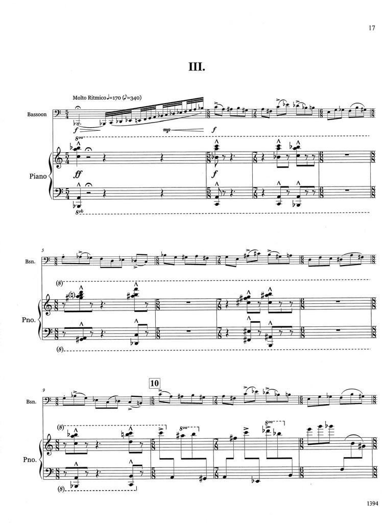 Commisioned by and dedicated to Ryan Hare, who performed the premiere at the 2012 IDRS Conference in Oxford, Ohio. This three movement work is contemporary without extended technique yet is extremely challenging for both bassoonists and pianist. Suitable for professional musicians and college/conservatory students.