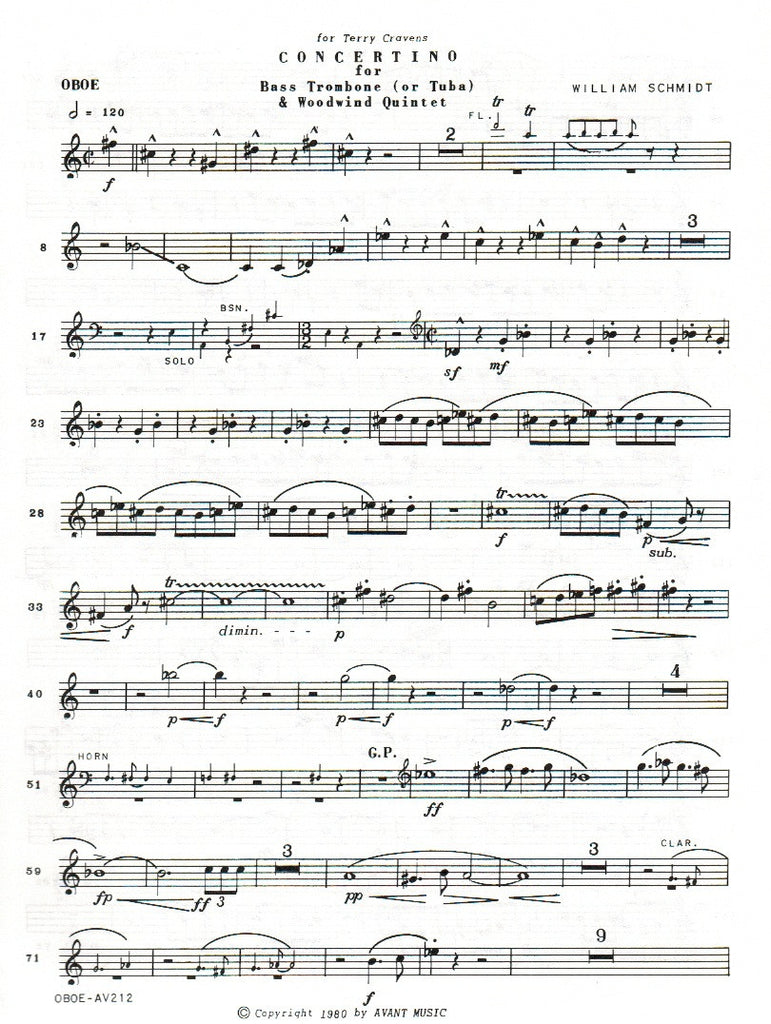 Concertino (score & parts) - WW5/TUBA (or Bass Trombone)