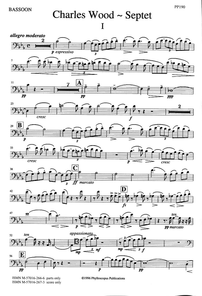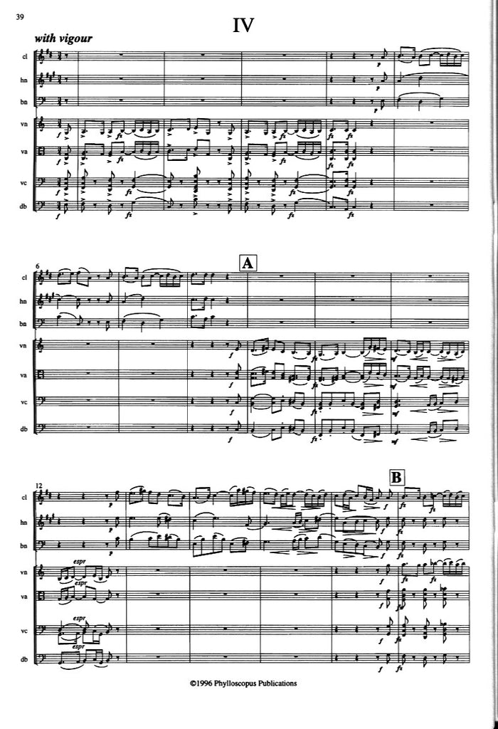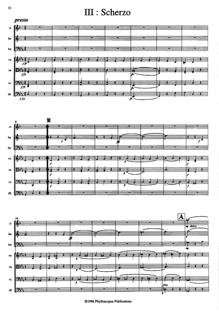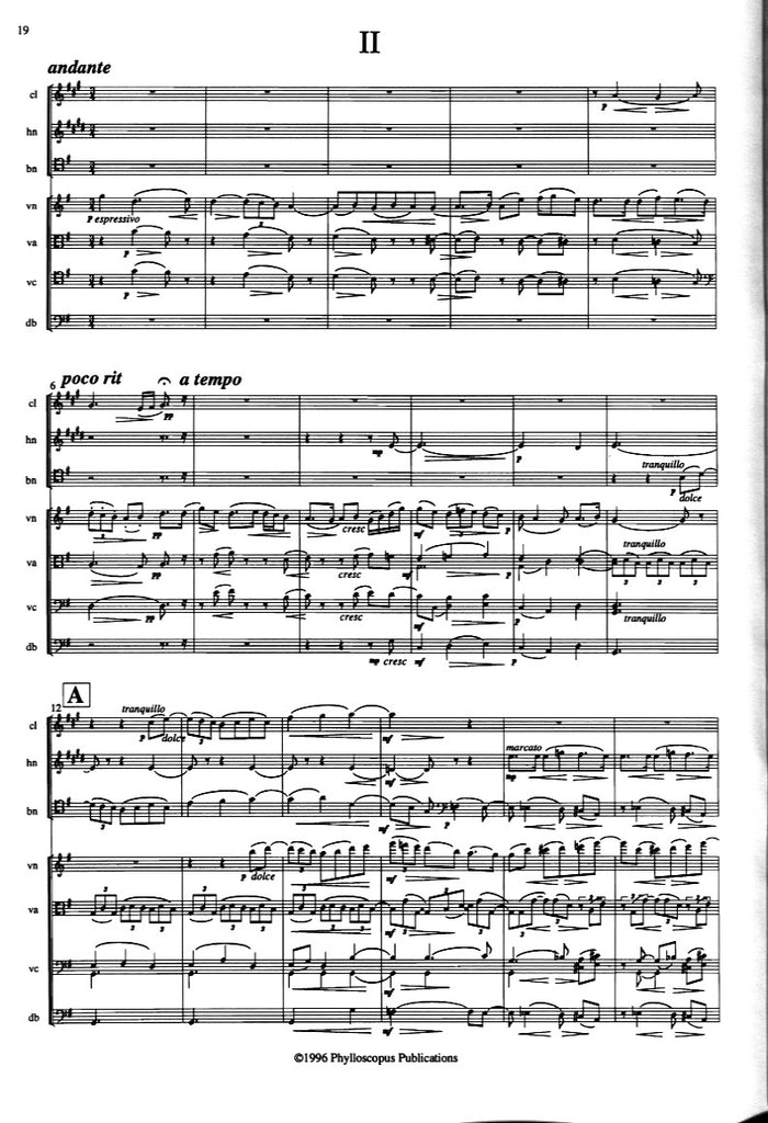 for clarinet, horn, bassoon, violin, viola, cello, and string bass