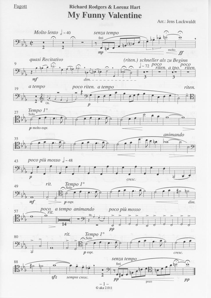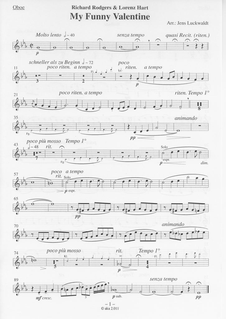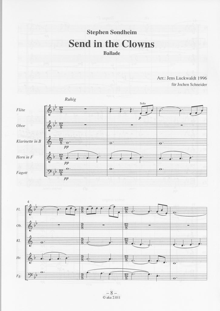 Arranged by Jens Luckwaldt, this collection includes both Send in the Clowns by Stephen Sondheim as well as My Funny Valentine by Richard Rodgers.