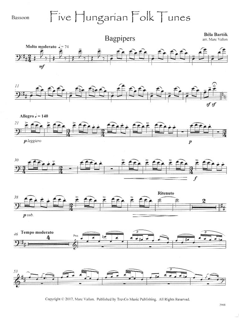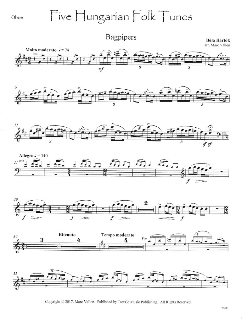 Five Hungarian Folk Tunes (Vallon) - OB/BSN/PN