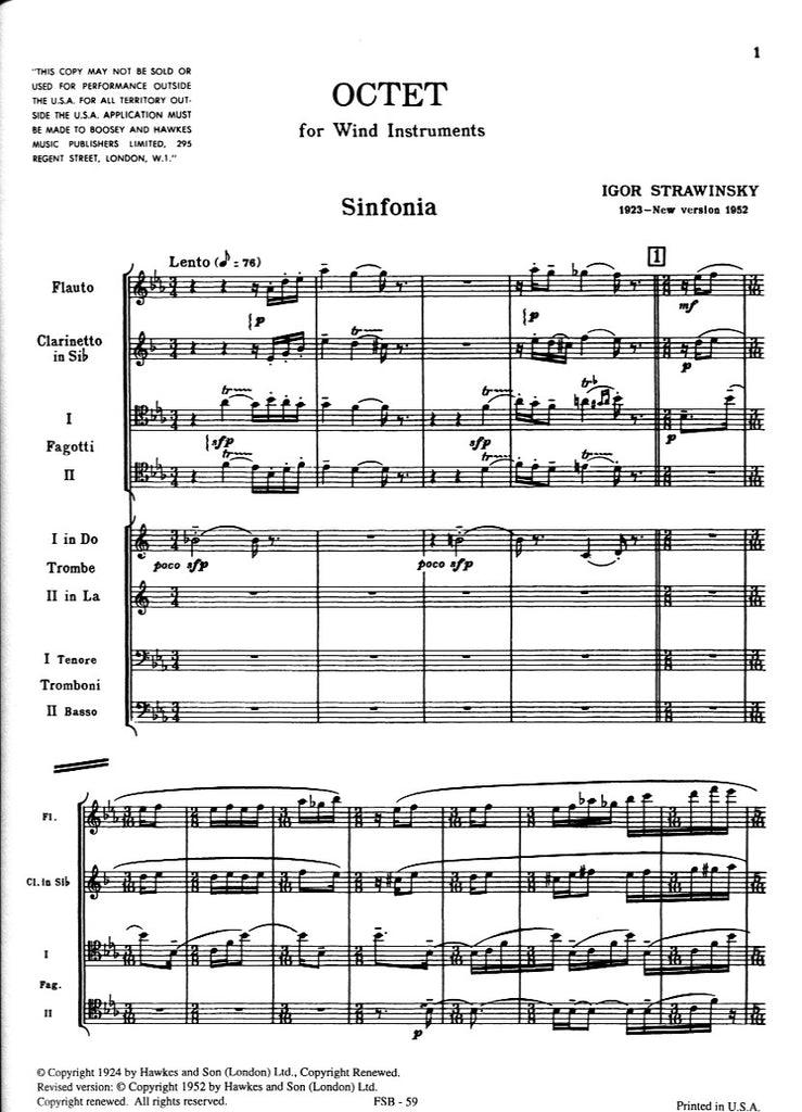 Octet for Wind Instruments (1923, revised 1952)