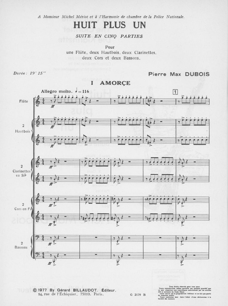 Huit Plus Un (score only) - FL/2OB/2CL/2HN/2BSN