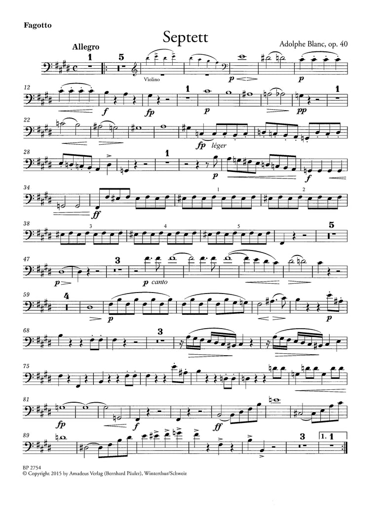 for clarinet, bassoon, horn, violin, viola, cello, and double bass