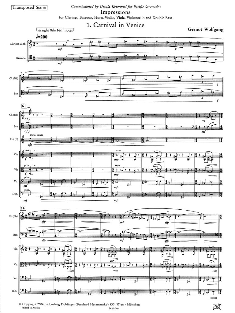 for clarinet, bassoon, horn, violin, viola, cello, and string bass
