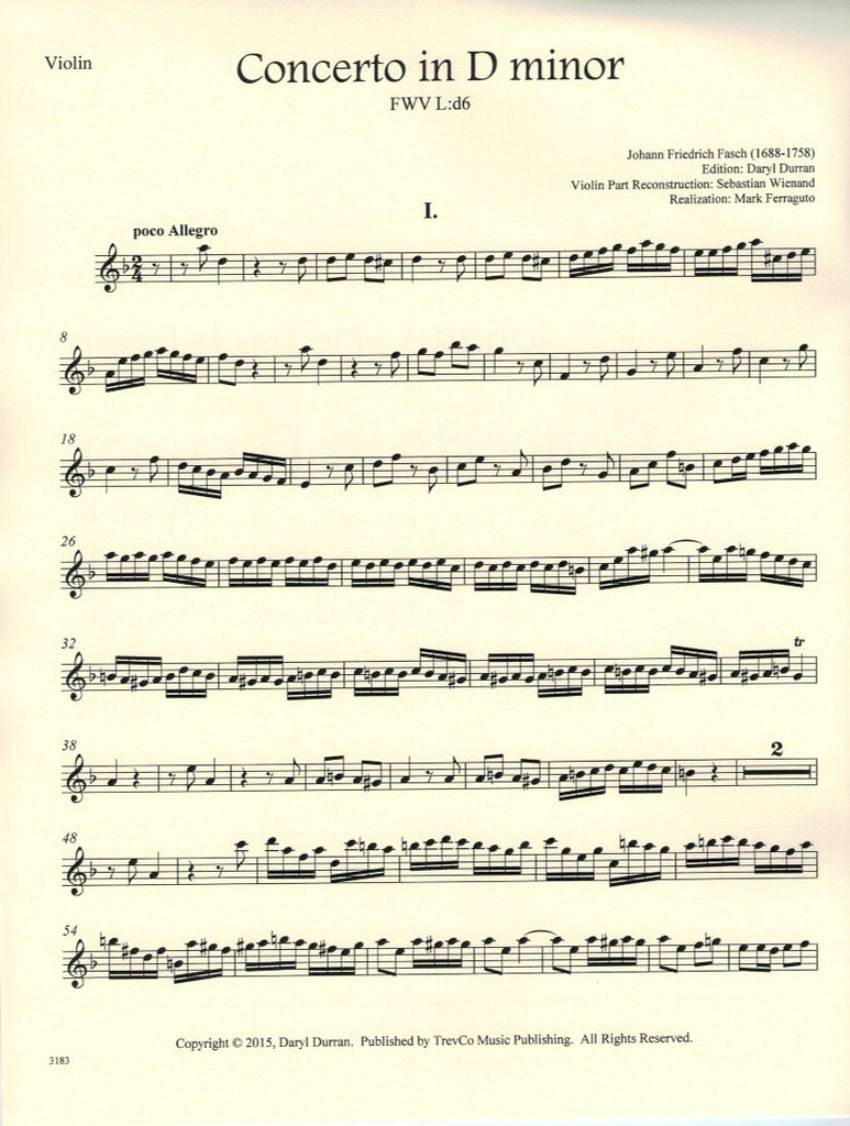 Edited by Daryl Durran. Violin Part reconstructed by Sebastian Wienand. Continuo realization by Mark Ferraguto.