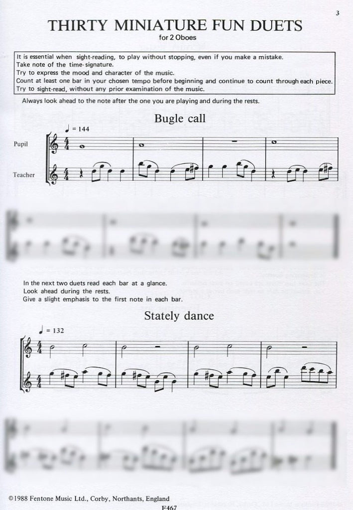 The duets are suitable for beginners and also for more advanced students who should start from the beginning, taking either the pupil's or the teacher's part, and the teacher playing the second line.