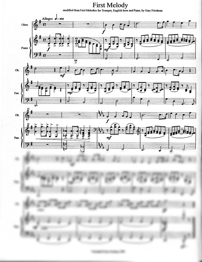 These were written at the suggestion of Janet Popesco Archibald, my oboe teacher, who expressed a need for more nice pieces for oboe students early in their training. Because of these students' relatively poor endurance, the piano takes over the melodies in places to give the oboist opportunities to rest. They are suitable for beginning and intermediate level students, both young and adult. Piano cues appear in the oboe part so more of the melodies can be played on the oboe when appropriate.