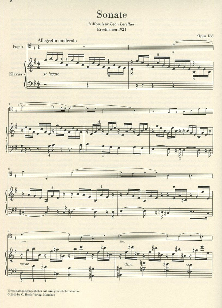 This edition is edited by Peter Jost, and comes with a fairly substantial preface that will be of interest to all serious bassoonists. Saint-Saëns wrote his three wind sonatas Op 166-168 in his final year. These new Urtext editions are based on the composer's manuscripts, marking the first time they have been consulted since initial publication.
