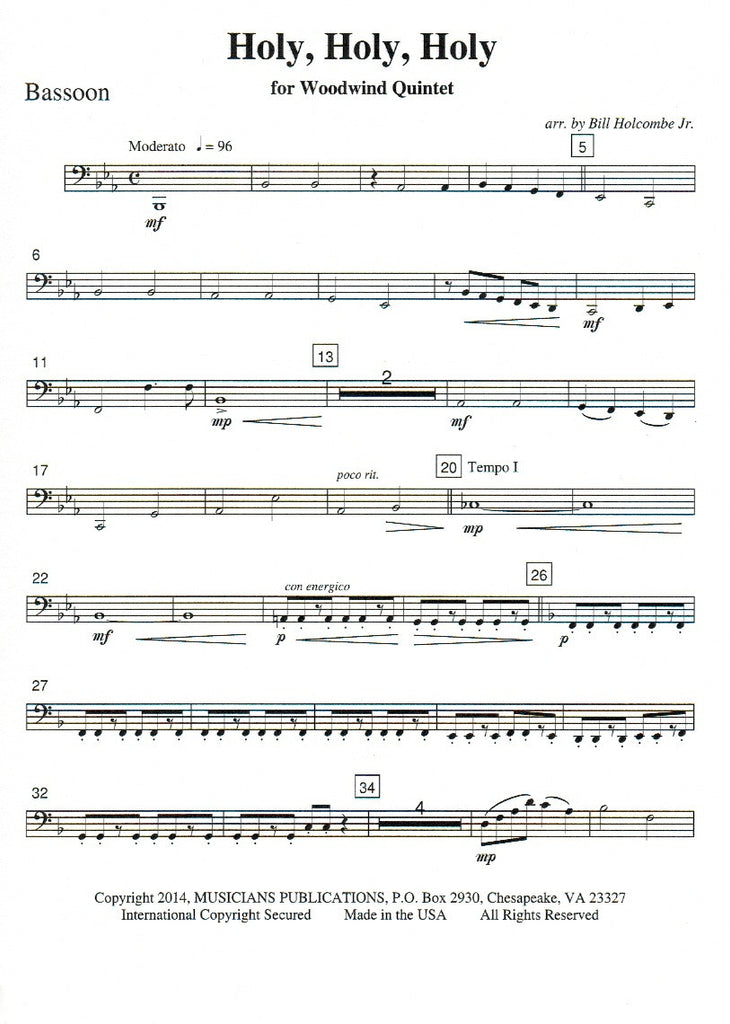 Arranged by Bill Holcombe Jr. This edition comes with an alternate bass clarinet part in lieu of bassoon.