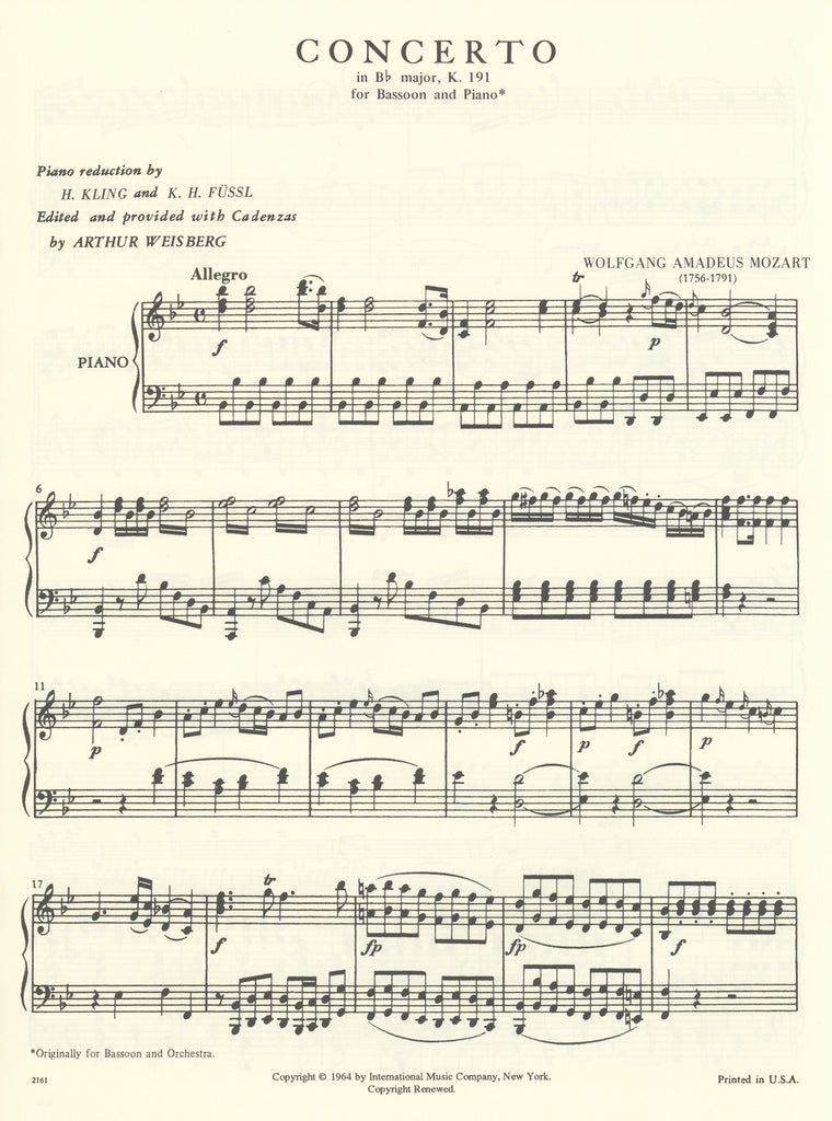 Concerto in Bb Major, K191 (Weisberg) - BSN/PN