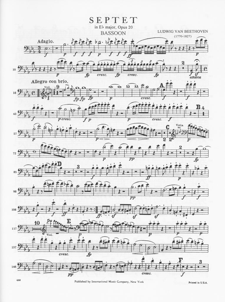Septet in Eb Major Op 20 (Parts Only)-CL/BSN/HN/VLN/VLA/CEL/KB