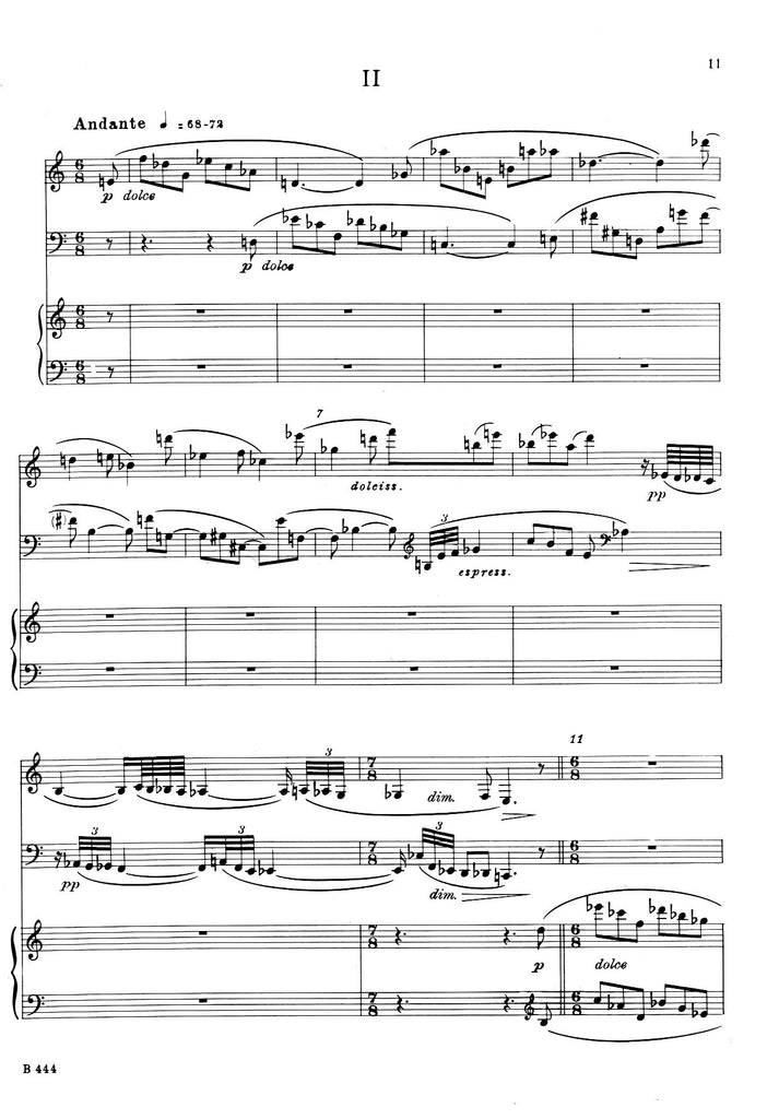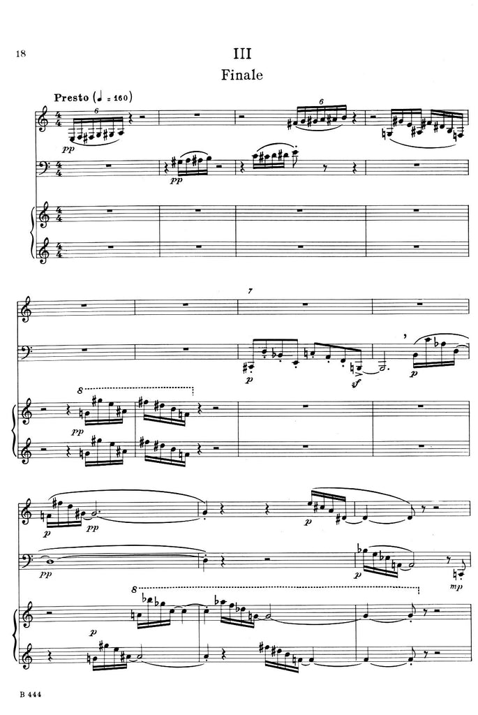 This piece is a modernistic tour-de-force, with limited use of extended technique (harmonics) and a fast-paced intensity typical of the composer's late 20th century output.