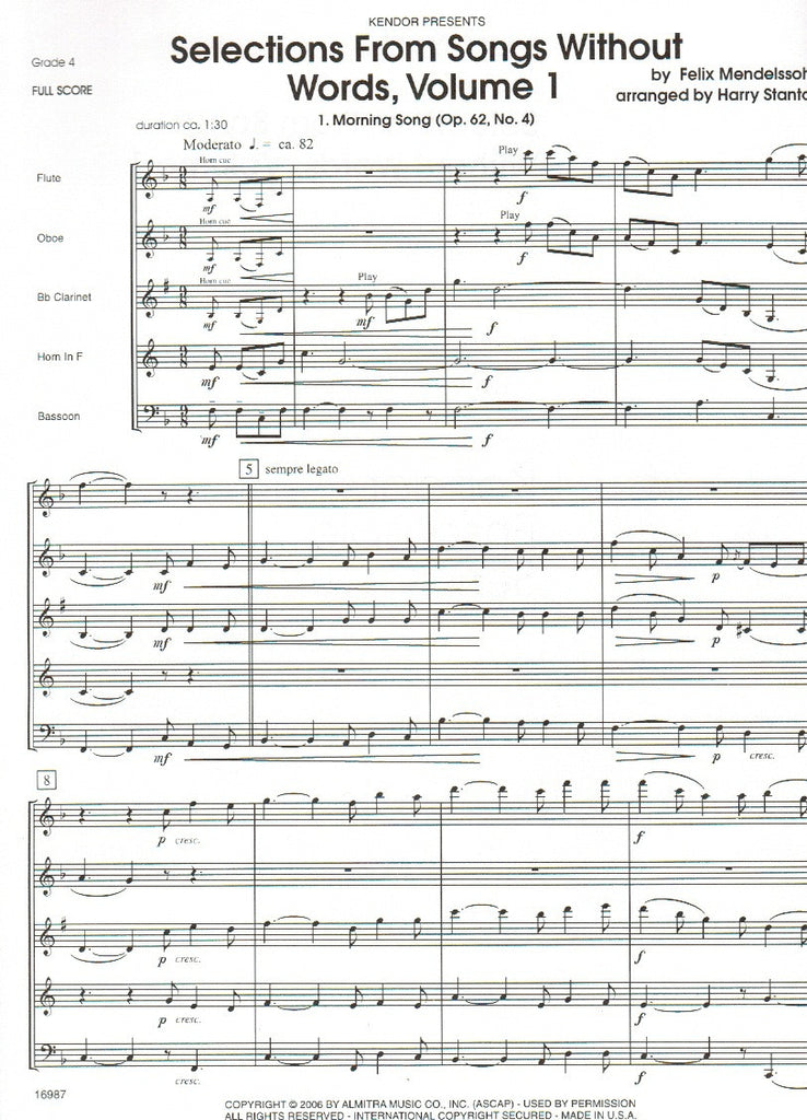 Songs Without Words, V1 (score & parts) - WW5 [POP]