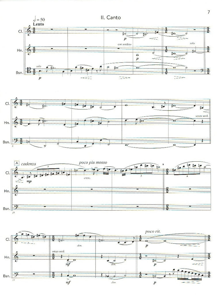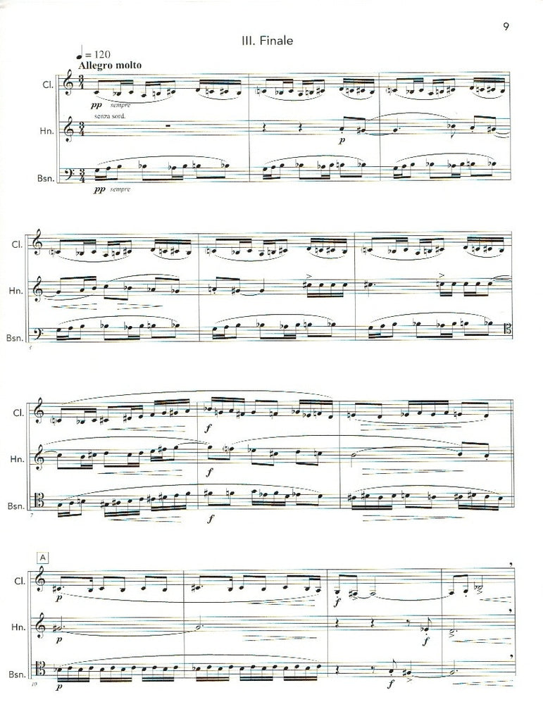 This work was written in 1982 when I was a member of the North Wind Quintet, based in Los Angeles. It is one of several works written for some of the less common combinations of wind instruments. It was premiered in a live radio broadcast in June of 1984 by Don Ransom, Louise MacGillivray and Jenice Rosen. Later revised slightly, in 2008.