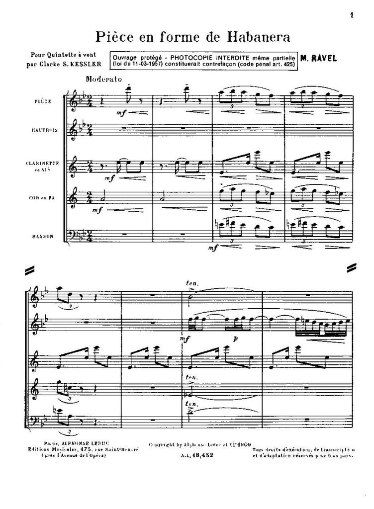 Piece en Forme de Habanera (Score & Parts)-WW5
