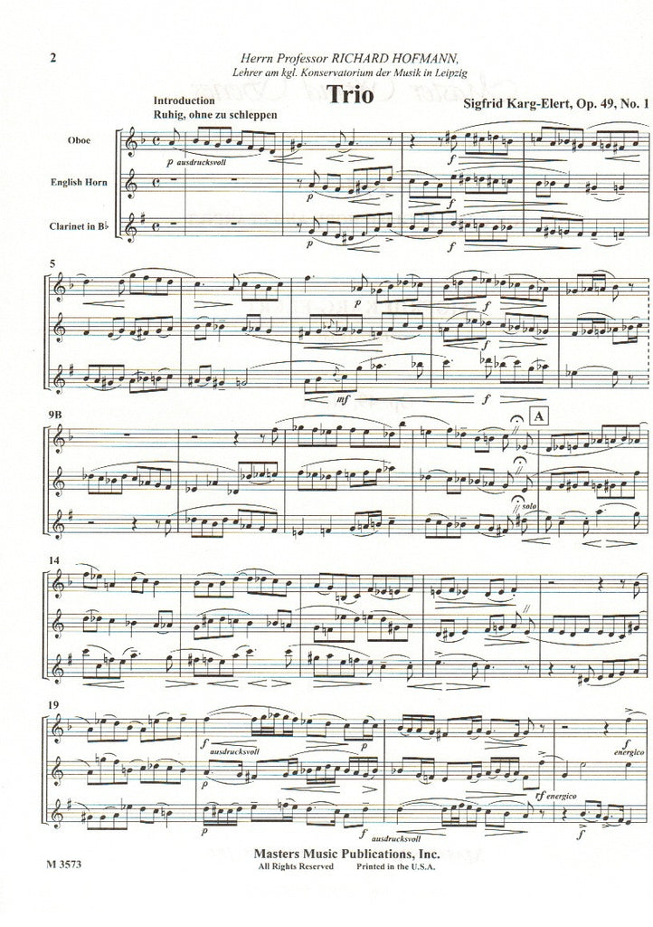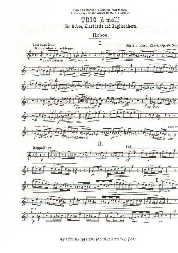 Trio in d minor, op. 49, #1 for oboe, English horn, and clarinet