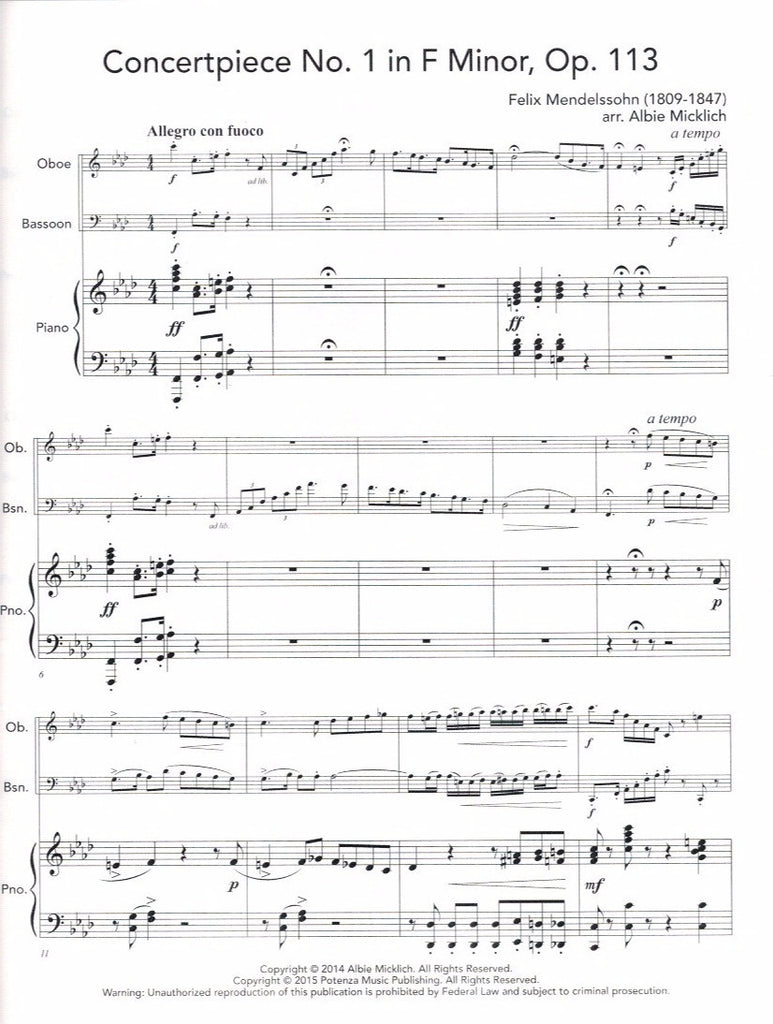 Concertpiece #1 in f minor, op. 113 for oboe, bassoon, and piano