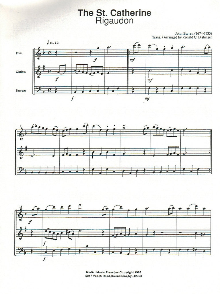 St. Catherine's Rigaudon (score & parts) - FL/CL/BSN