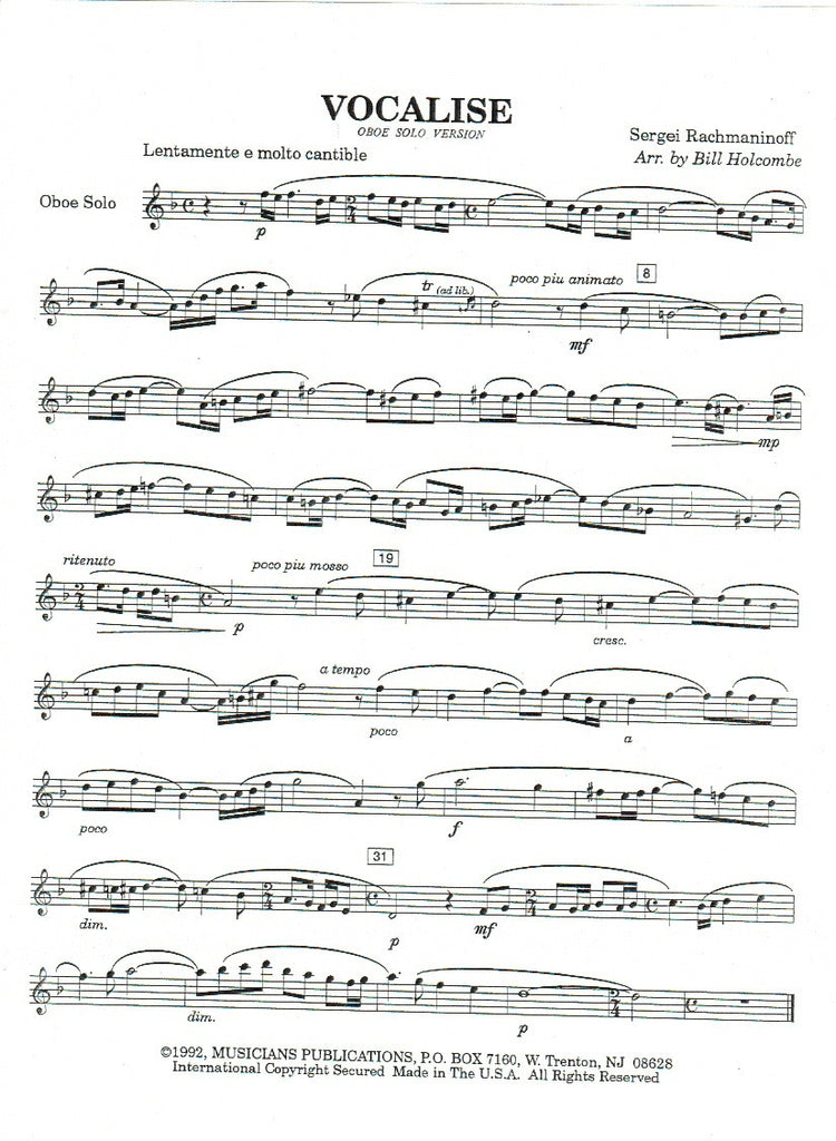 Arranged by Bill Holcombe. This edition showcases the oboe.