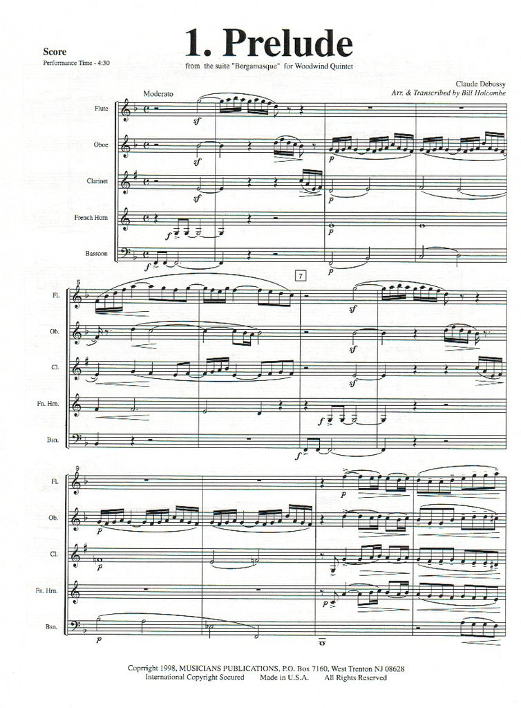 Prelude from "Suite Bergamasque" (score & parts) - WW5