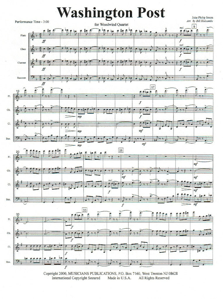 Arranged by Bill Holcombe. This edition comes with an alternate bass clarinet part in lieu of bassoon.