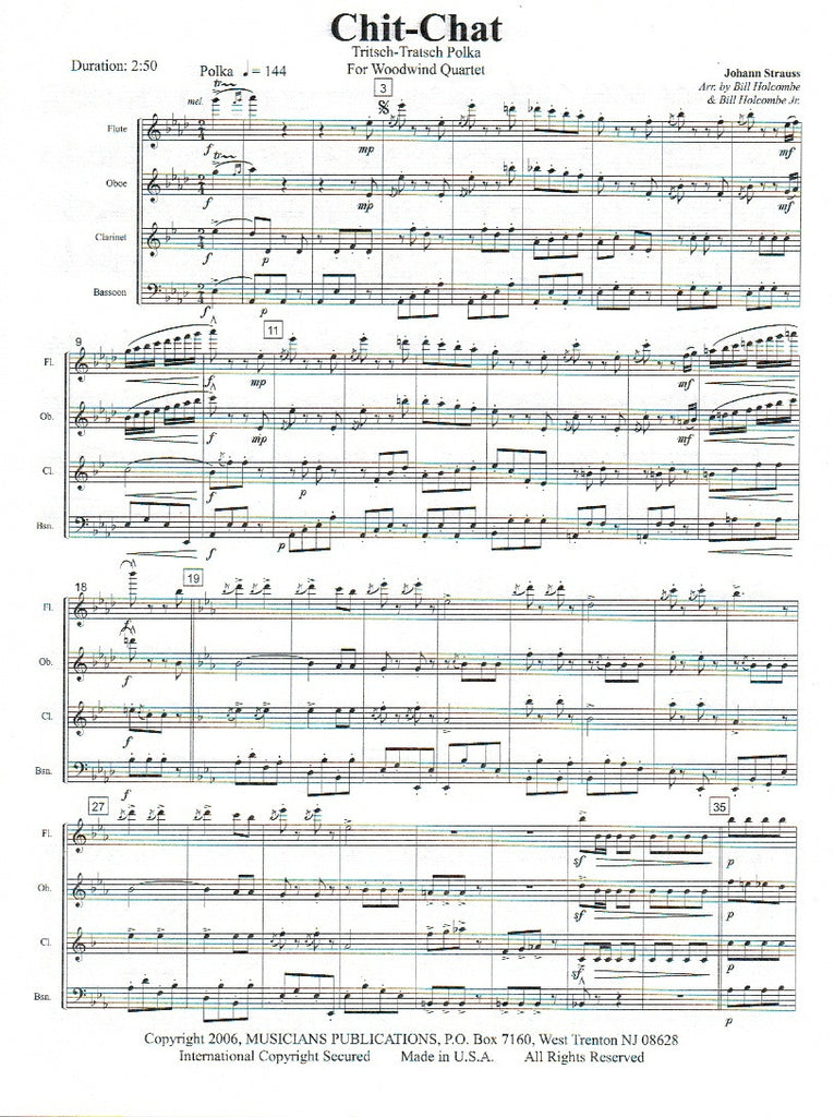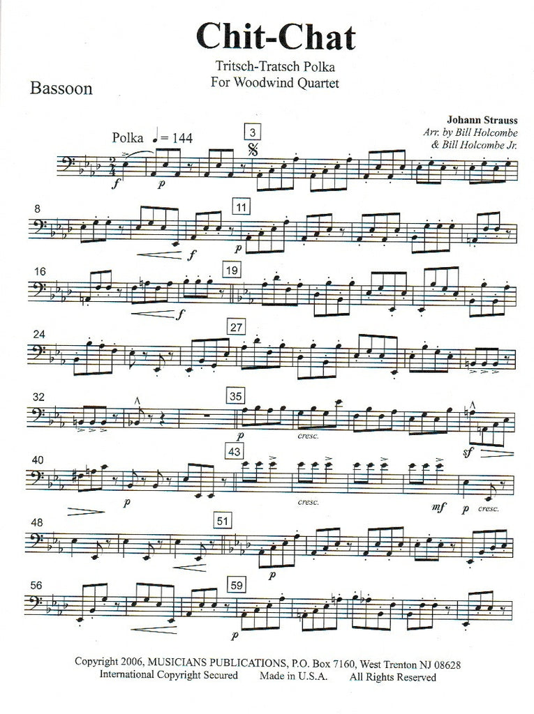 Arranged by Bill Holcombe and Bill Holcombe Jr. This edition comes with an alternate bass clarinet part in lieu of bassoon.
