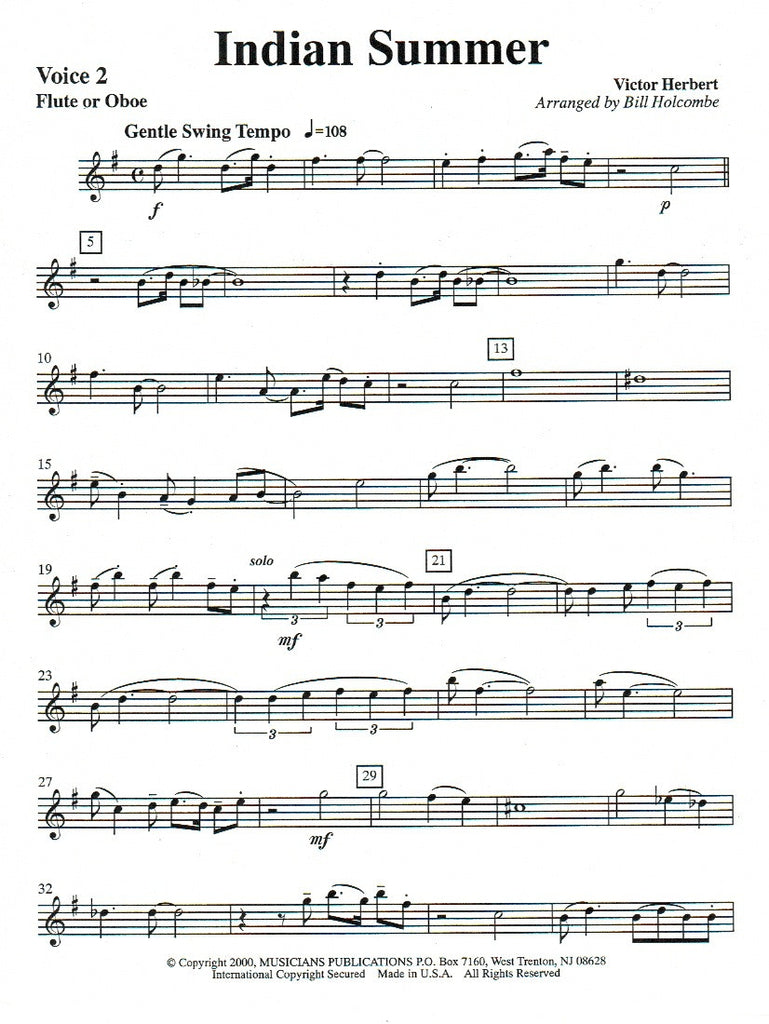 - Voice 2 may be performed on flute, oboe, or clarinet