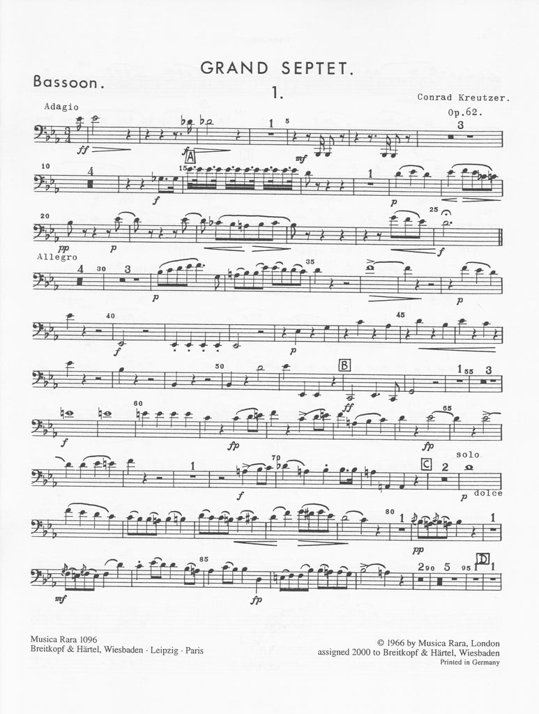 Grand Septet in Eb Major, op. 62 (parts only) - CL/HN/BSN/STGS