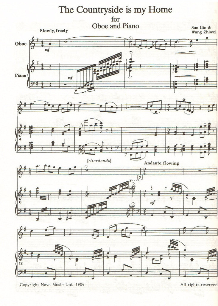 The pieces is a genuine original for oboe and piano' however in style it represents an interesting mixture of western romantic music and chinese folk music, where the melody instrument would be the di, a type of flute. The slow introduction followed by a series of episodes of gradually increasing speed is typical.