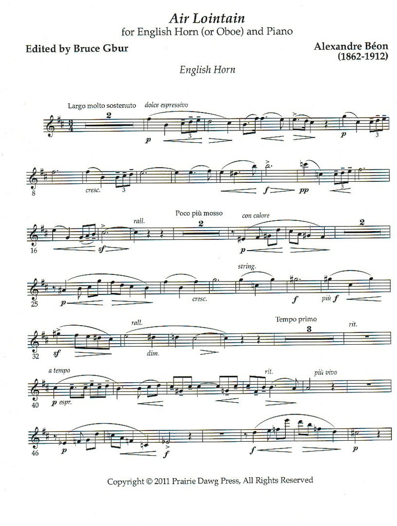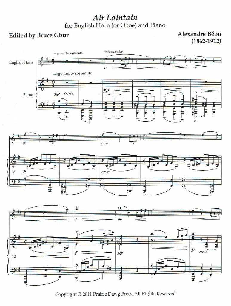 The title translates to"Distant Song". Originally for English horn and orchestra, the piano reduction was prepared in 1912 by the composer. An effective and atmospheric work. Edited by Bruce Gbur. An alternate oboe part is included in lieu of English horn.