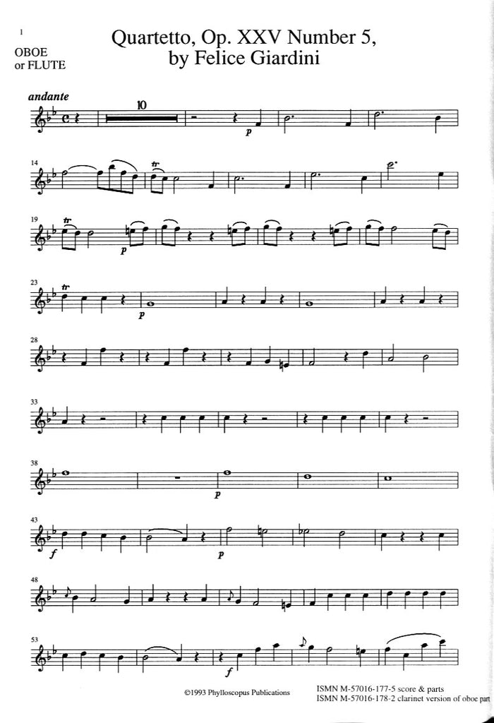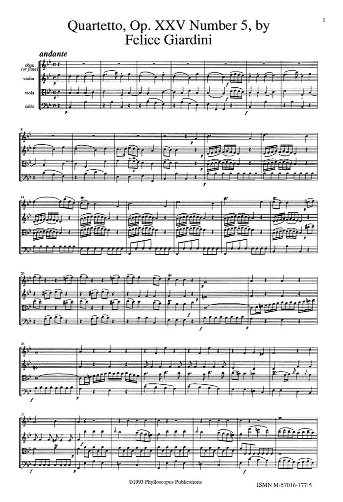 Quartet in Bb Major, op. 25, #5 (score & parts) - OB/VLN/VLA/CEL