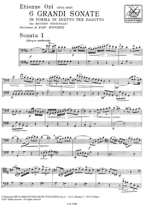 Edited by Enzo Muccetti, these sonatas are taken from Ozi's Bassoon Method. They come as a performance score- there are no separate parts.