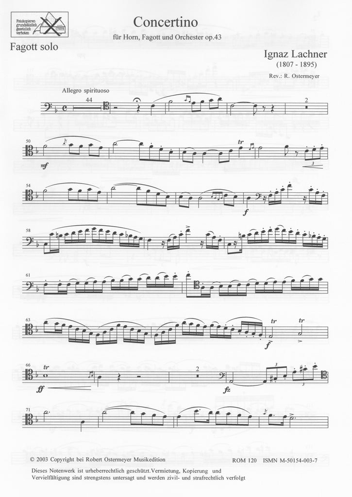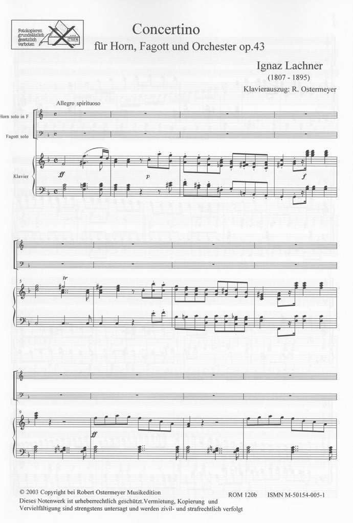 Piano reduction by R. Ostermeyer. Originally for solo horn, bassoon, and orchestra.