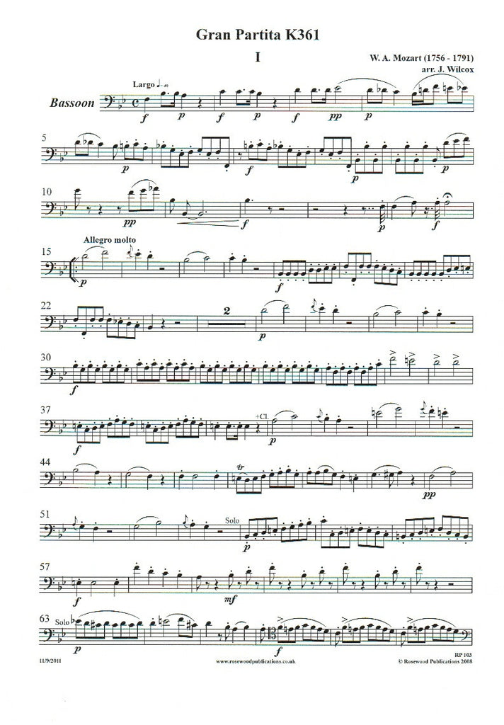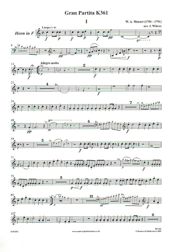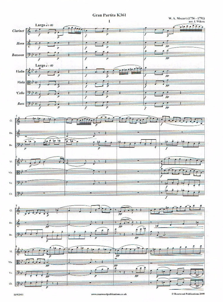 Four Movements from "Gran Partita" (score & parts) - CL/BSN/HN/4STGS
