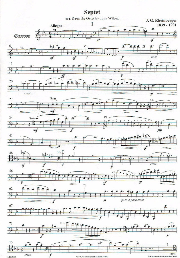 for clarinet, horn, bassoon, violin, viola, cello, and string bass