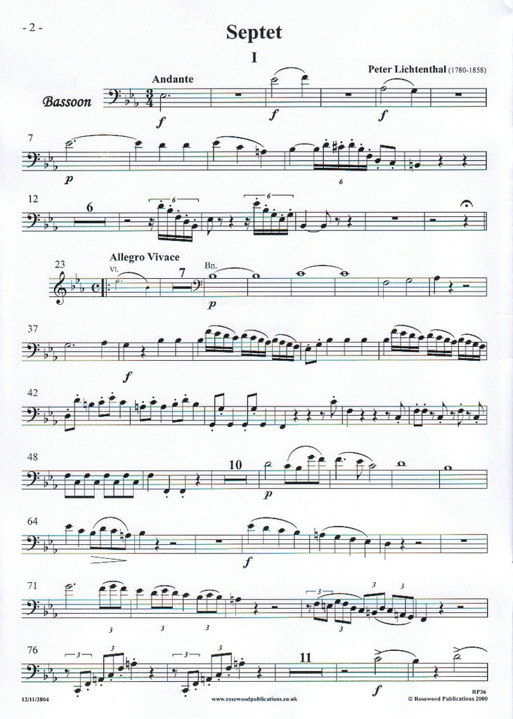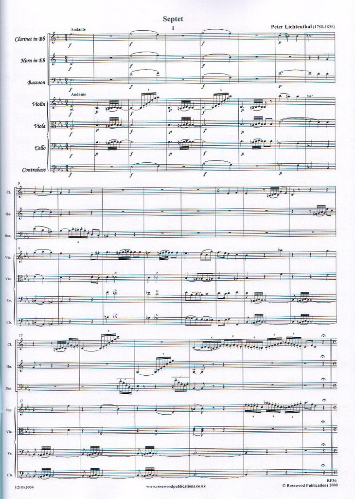 for clarinet, horn, bassoon, violin, viola, cello, and string bass