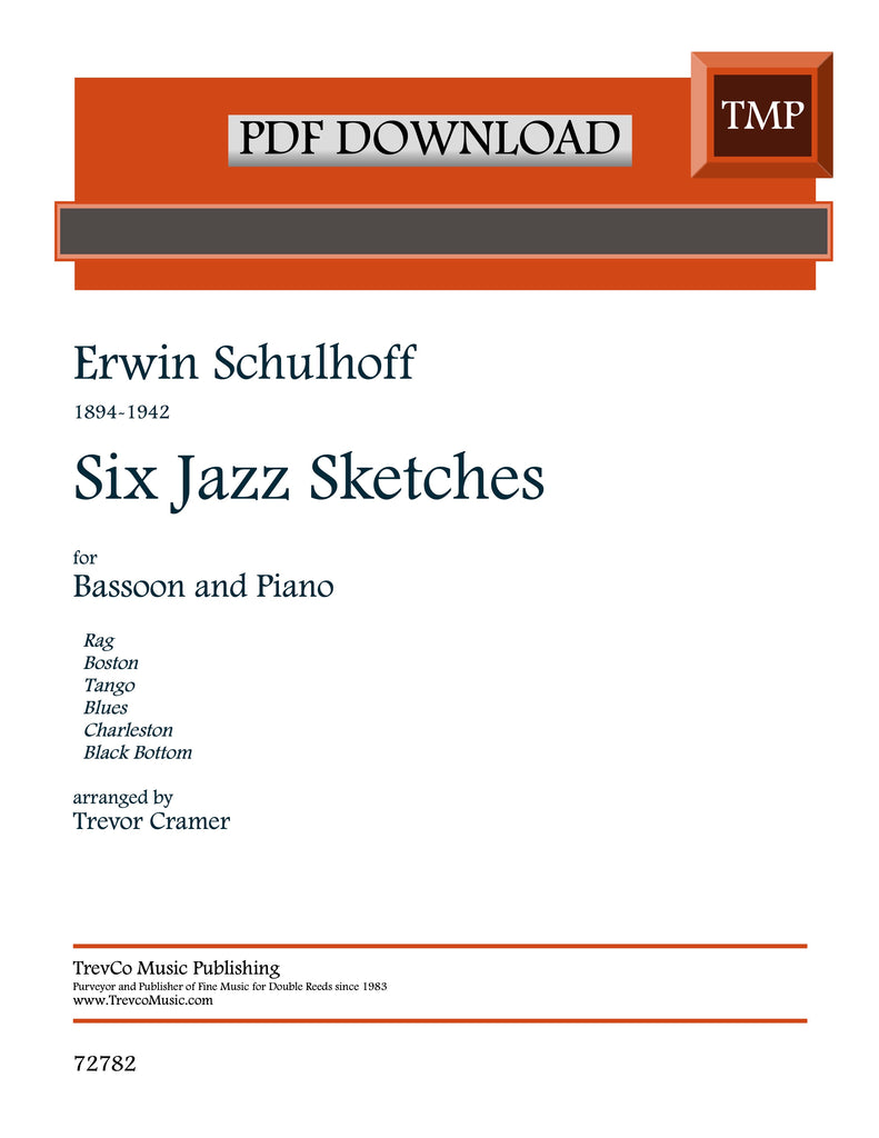 The Six Jazz Sketches (1927) originally for piano, have been arranged for solo bassoon and piano, and epitomize Schulhoff’s embrace of the jazz idiom, albeit in his own vernacular.