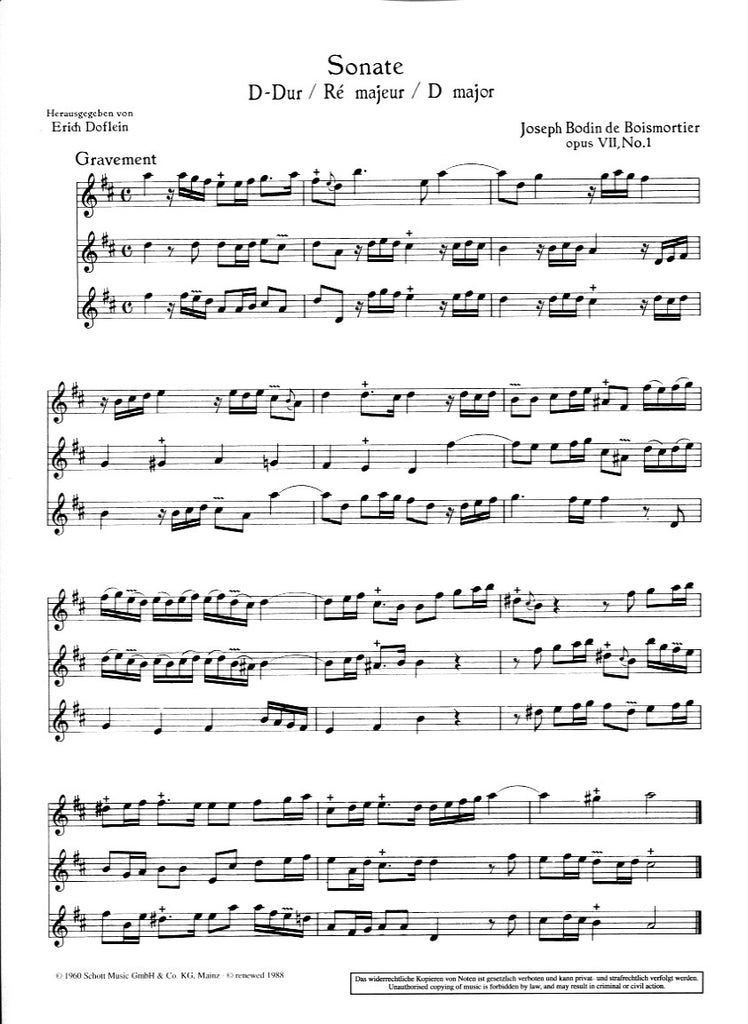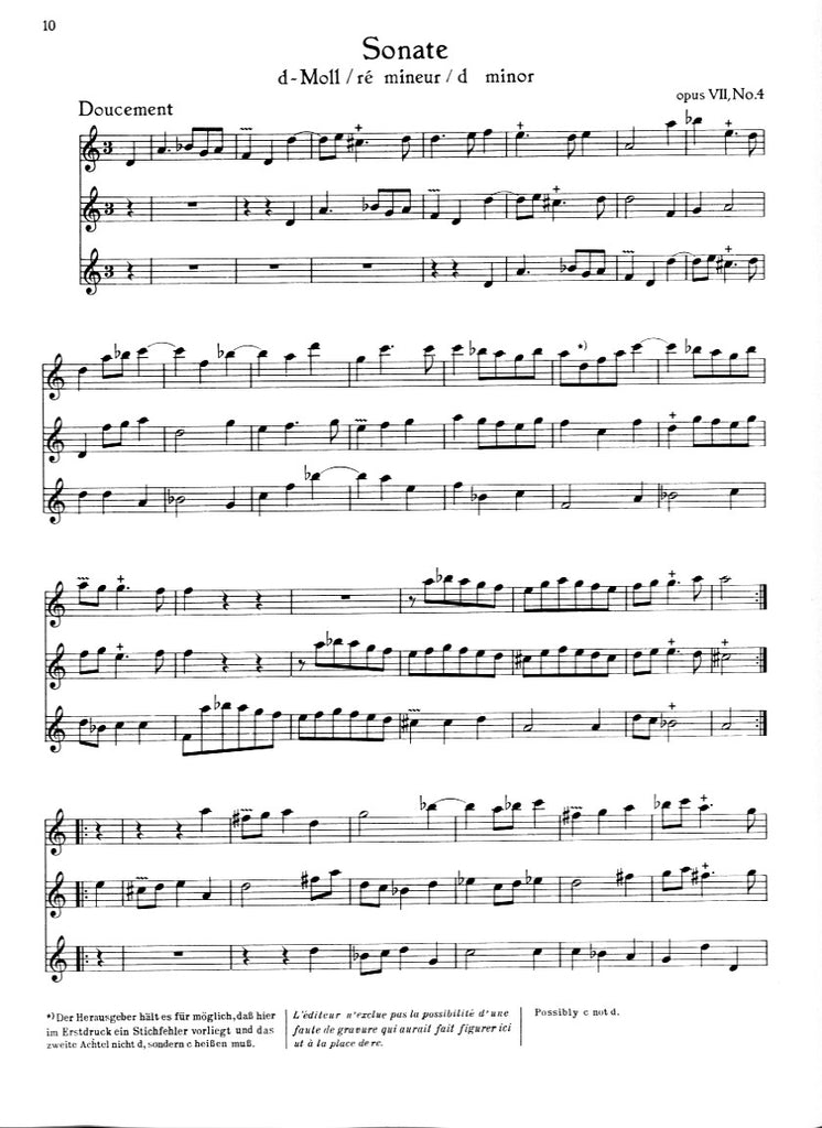 Six Sonatas, op. 7, V1 (performance score) - 3FL or 3OB