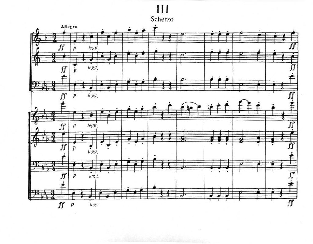 for clarinet, horn, bassoon, two violins, cello, and string bass
