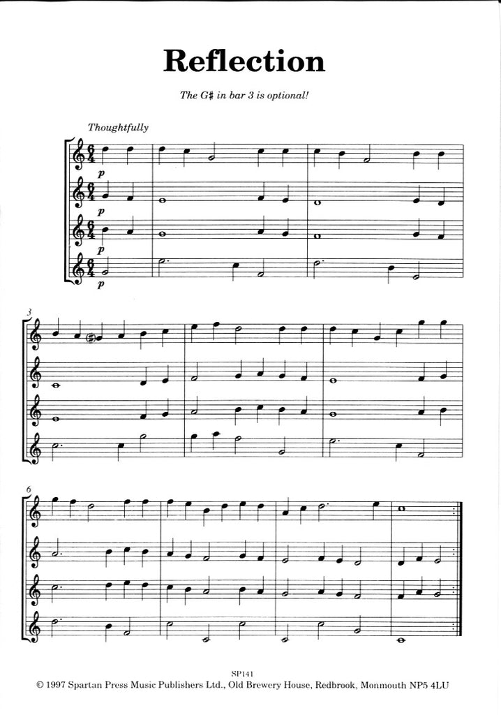This collection presents very easy music wherein each of the five short pieces sounds good in two, three, or four parts on practically any combination of instruments. This work comes as one performance score- there are no individual parts.
