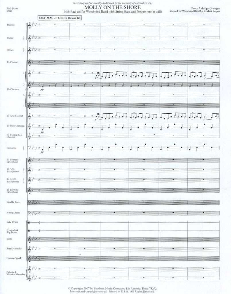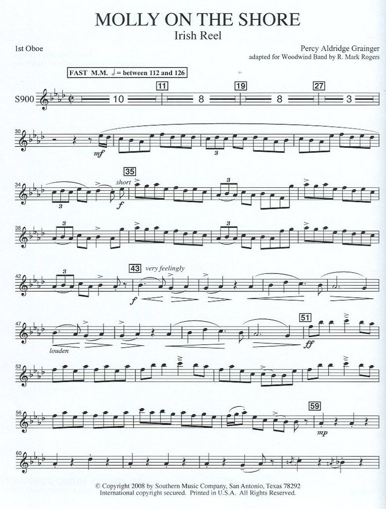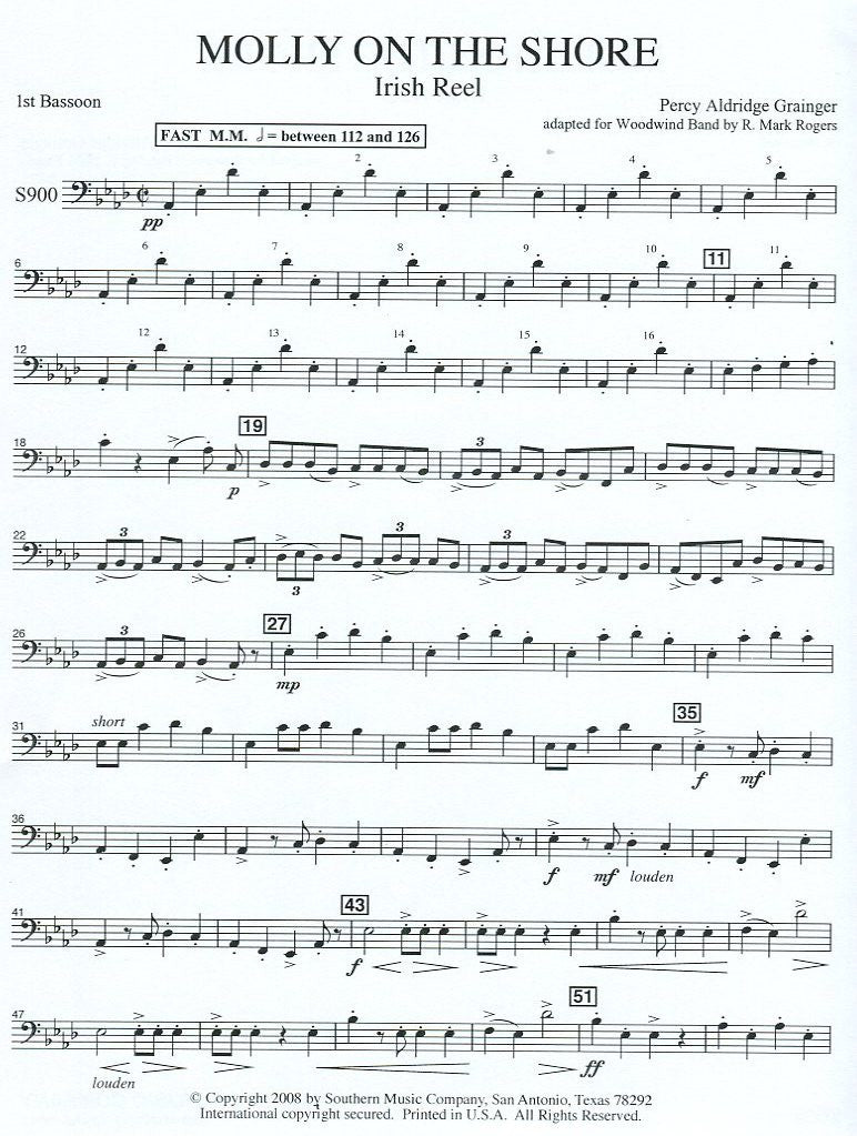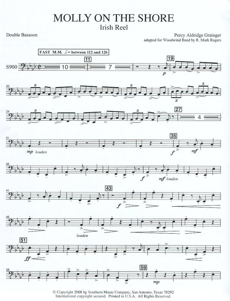 This setting of Molly on the Shore, originally for Military Band, has been adapted for Woodwind Band by Mark Rogers. A version for bassoon and piano is available HERE