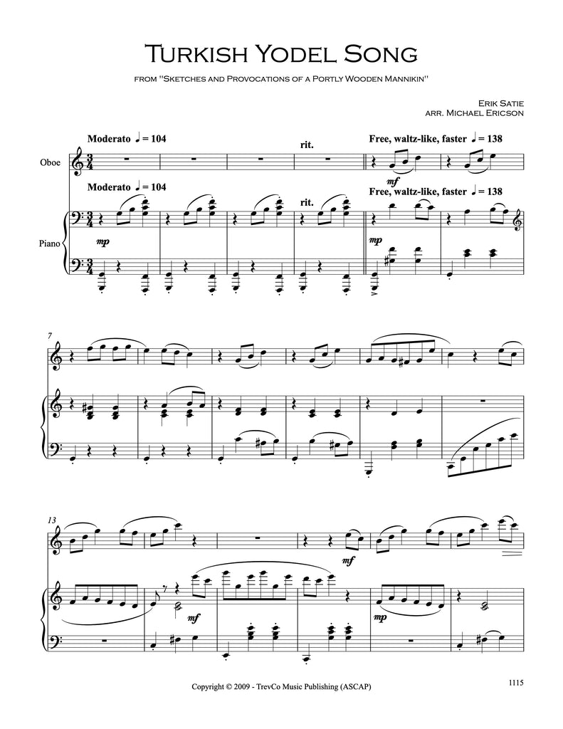 Arranged by Michael Ericson from the following piano pieces - Turkish Yodel Song, Thin Dance, and Espanana.