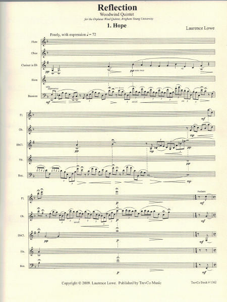 Written for the Orpheus Wind Quintet (BYU), this two movement work from award-winning composer Laurence Lowe is a dynamic addition to the quintet repertorie for the college level and professional level quintet.