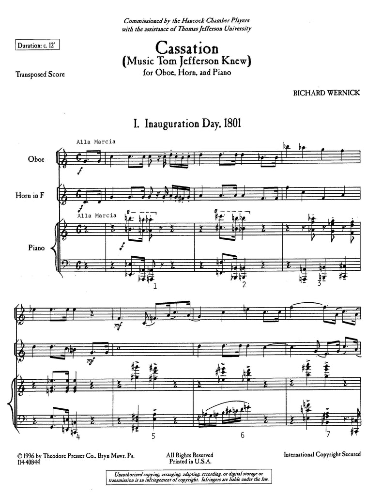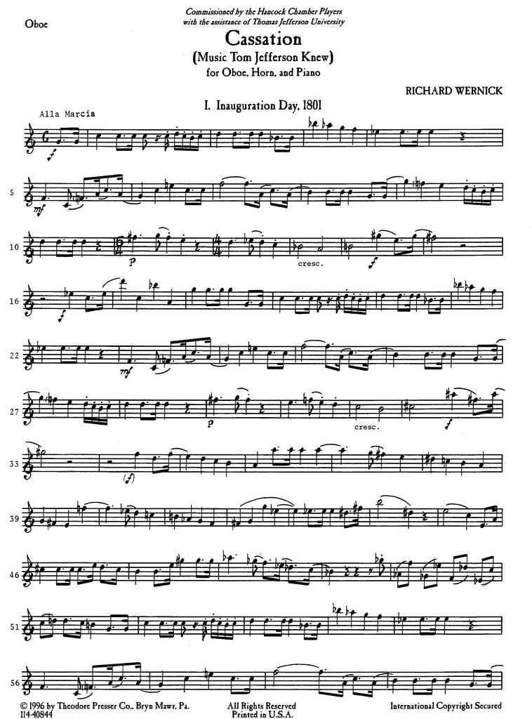 Cassation: Music Tom Jefferson Knew - OB/HN/PN