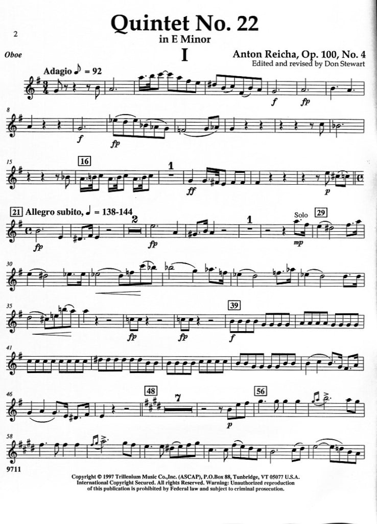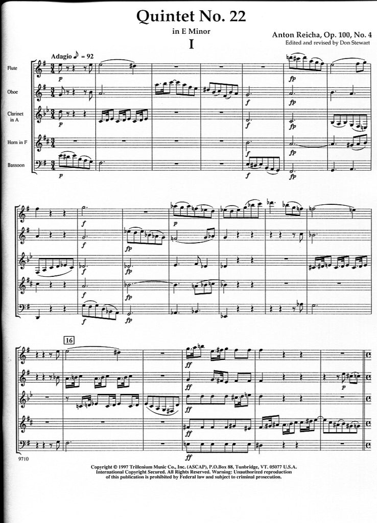 Quintet in e minor, op. 100, #4 (score & parts) - WW5