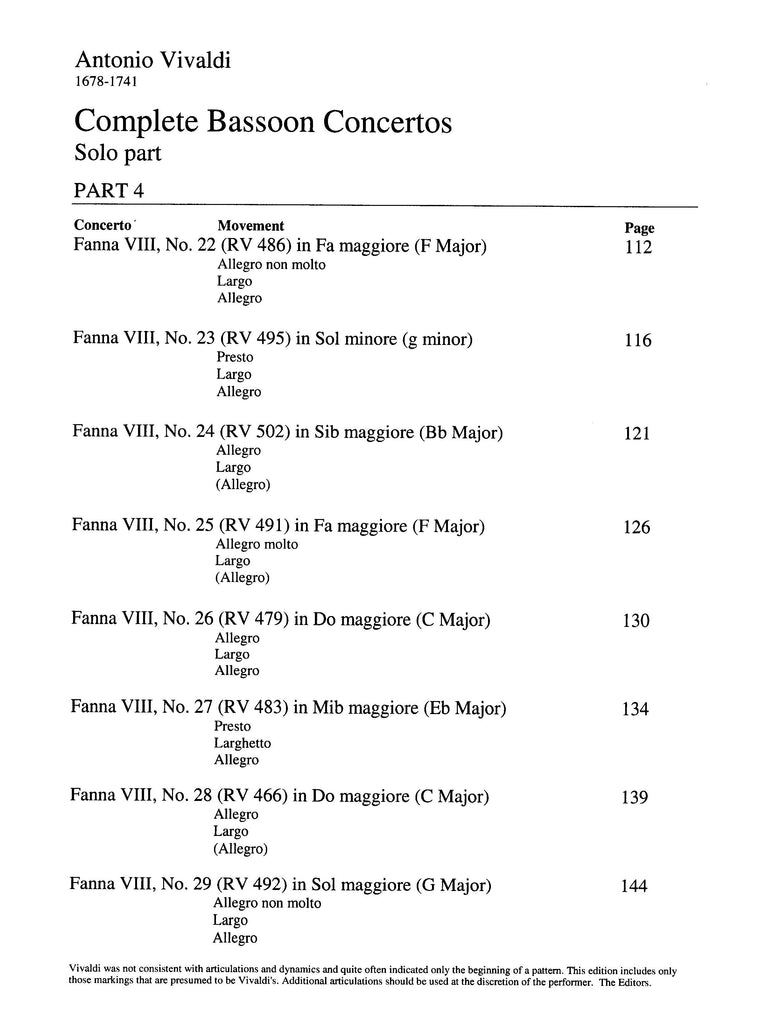 Complete (37) Bassoon Concertos FVIII 1-37 (solo parts only) - BSN