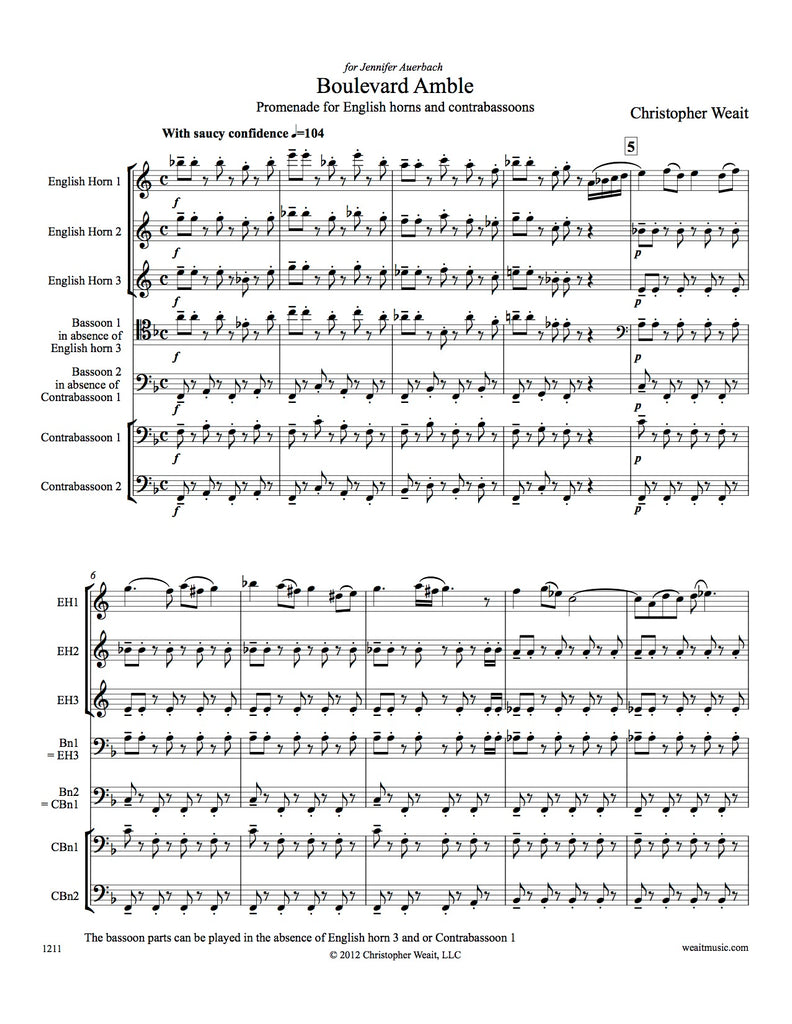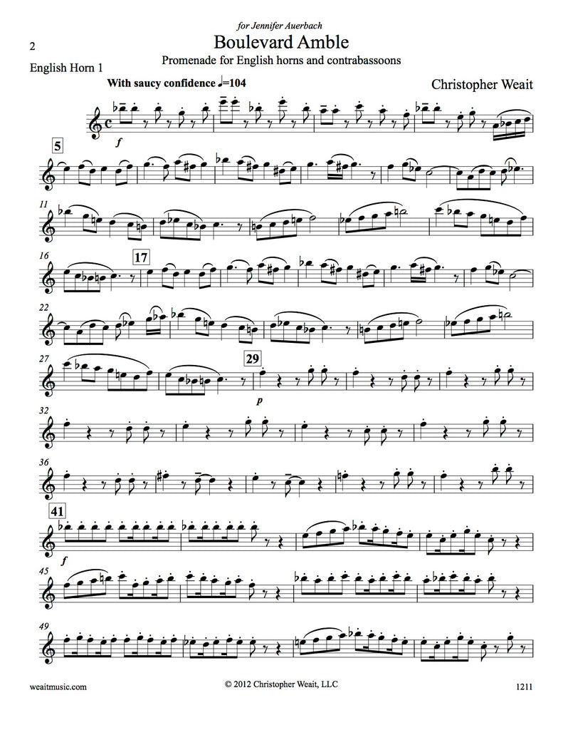 Boulevard Amble (score & parts) - 3EH/2CBSN or 2EH/2BSN/CBSN