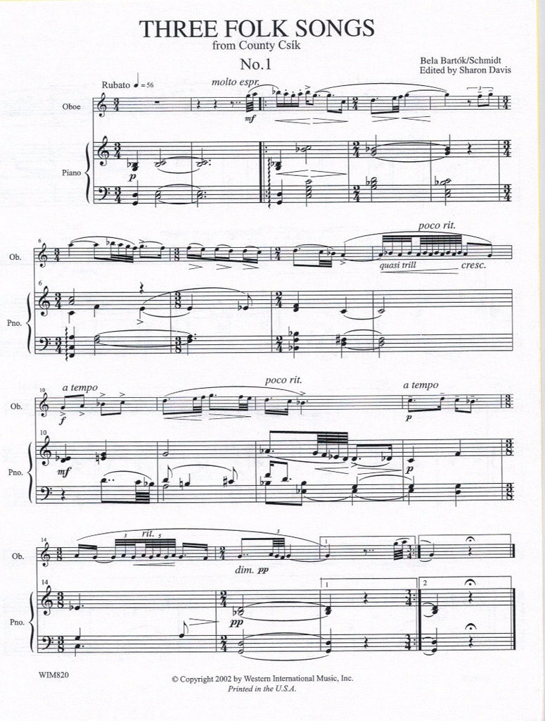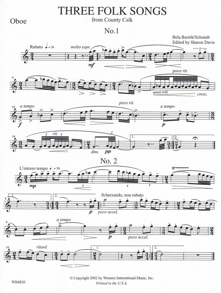 Arranged by William Schmidt. Edited by Sharon Davis. These three songs are short (just three or four lines each) and written in the style typical of Bartok. Rhythmically interesting, lyrical, with some unusual tonal characteristics.