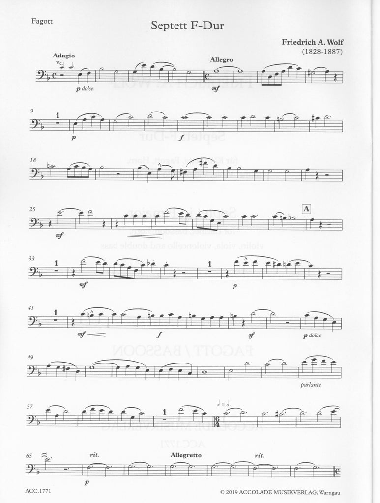 Septet in F Major (parts only) - CL/BSN/HN/VLN/VLA/CEL/KB